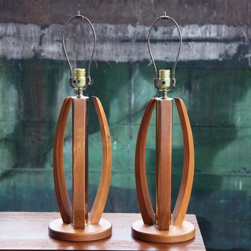 Beautiful Bentwood And Brass Pair Of Mid Century Lamps Danish Etsy